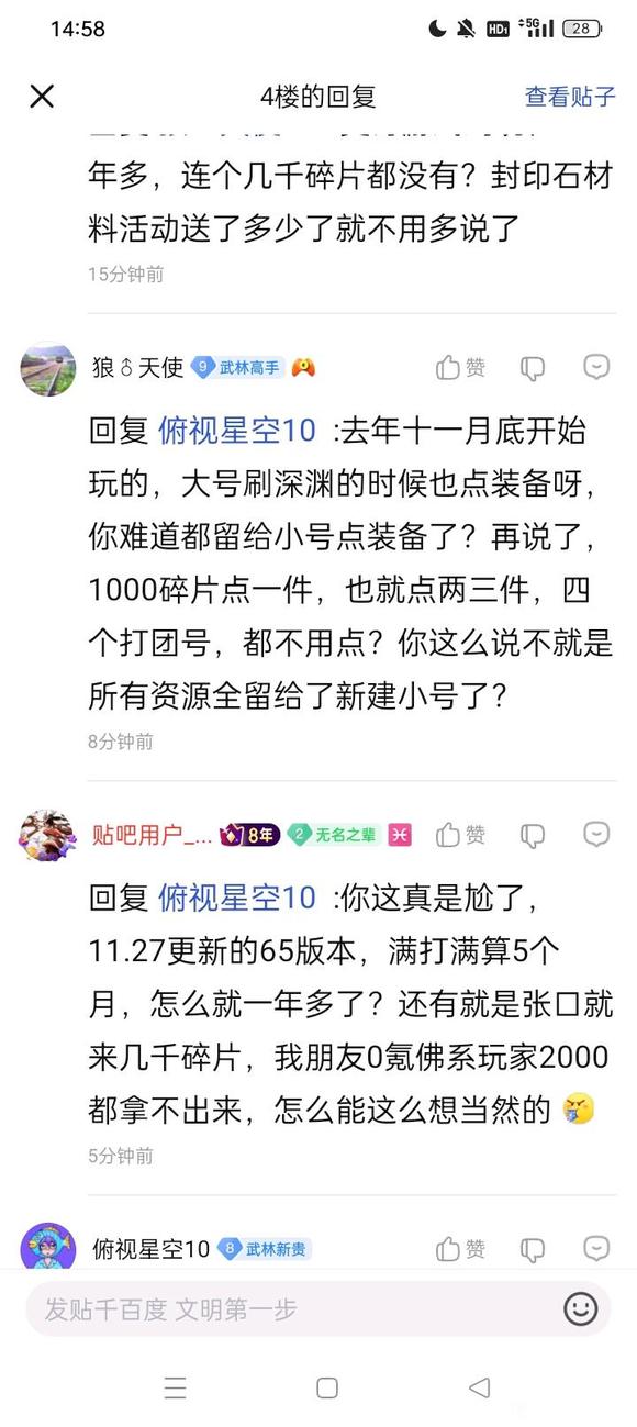 : 总体原有是这样的,我说现在白嫖小号达到2.9-3.0左右不难,某些‘‘人’’就觉得难。我一直理论下去,说不过就急眼拉黑。这个游戏出来也挺久了,现在靠活动就不充白嫖起个号,玩一个月怎么都 可以3.0左右了。下面截 ...