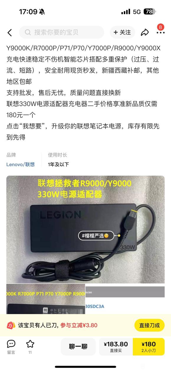 : 我本人用的2022y9000k 3080ti标配300w充电器平时玩的时候会掉电请问买一个330w的联想充电器是否兼容,是不是能缓解掉电情况 增强显卡性能如图