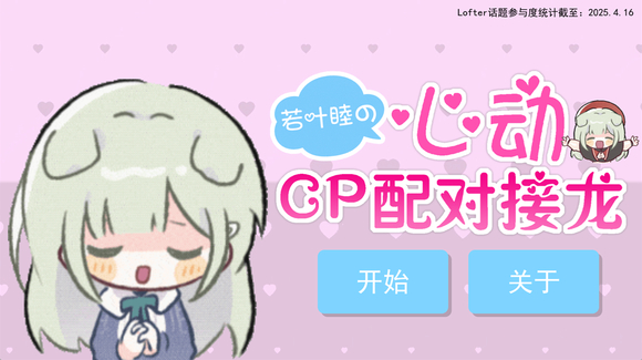 扮演人偶少女若叶睦,构造尽可能长的CP链吧!每对CP给予的游戏得分是基于Lofter话题参与度噢。