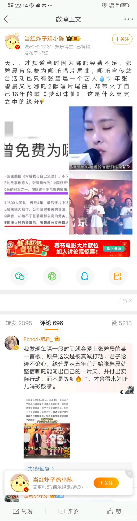 她是光线的,光线艺人都宣传哪吒了,而且她唱OST了。