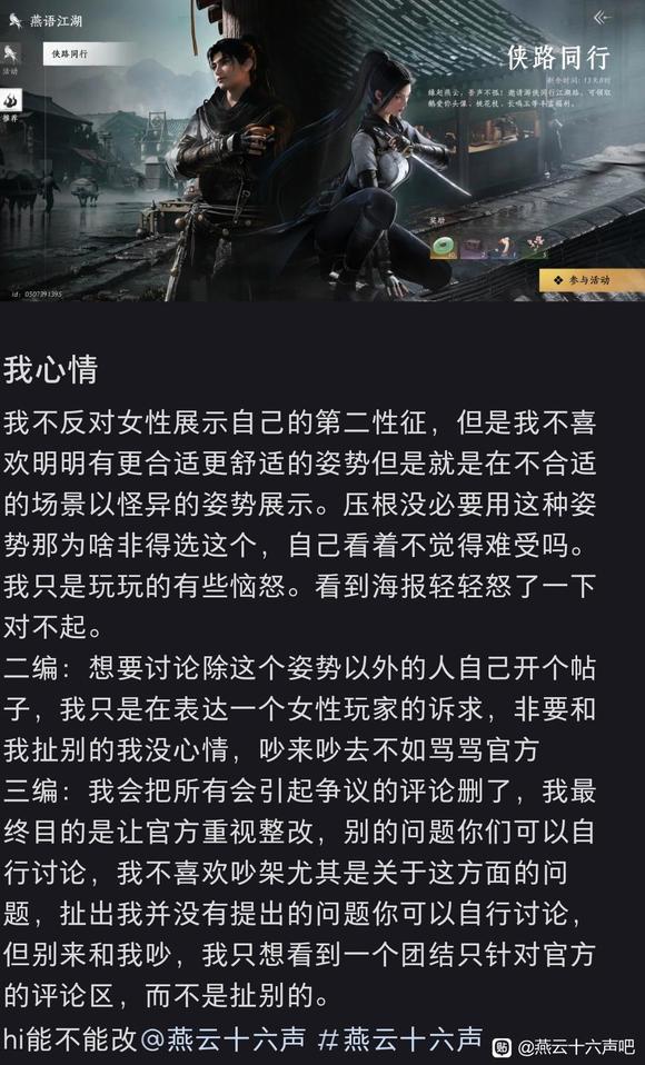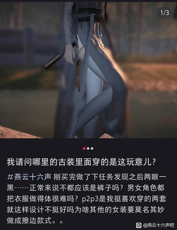 很奇怪这些魔怔人是从哪来的。 她们肯定不是从网游⭕来的,因为无论是王者,基三还是天刀逆水寒,大多数女角色的服装都是露腿的 她们也不是从内娱来的,不管是综艺节目,还是晚会,不管是男明星还是女明星的粉丝,只要她们看时装剧,女性角色就肯定会穿裙子,而且大多女性现代装穿裙子都是短裙 她们也不是从现实中来的,夏天各种商业中心的穿吊带包臀裙或者超短裙的妹子不要太多,只要她们有工作以外的社交或者线下购物需求,对女孩子穿的清凉应该也是司空见惯的。 她们也不是从单机⭕来的,国产仙侠单机,无论是仙剑还是古剑,大多数女性角色都是要漏腿的,身形都是纤瘦的。 后来我仔细想了想,也看了好多个带节奏的账号,都没有日常分享,大多只有燕云这个游戏的几个笔记。那只剩下两种可能,一是性别不明的黑水军,二是带男女对立节奏,涨nc女粉骗她们钱的yxh。 ![]() ![]() ![]() ![]() |
