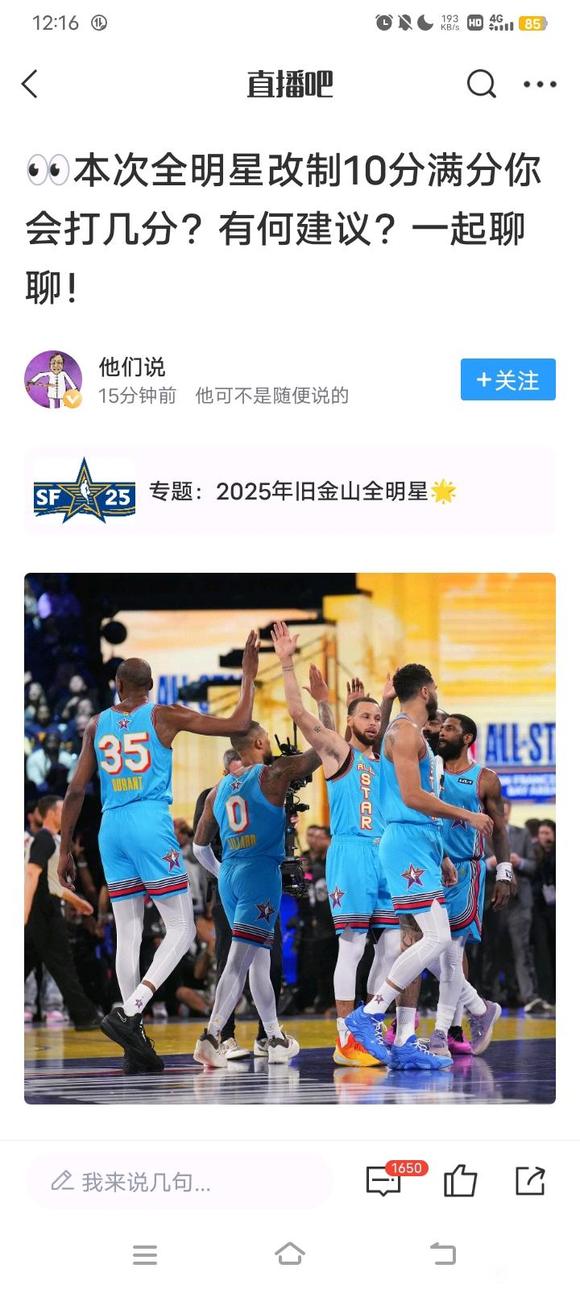 转一个评论是:以前的全明星赛跟以前春晚一样值得期待,现在的全明星赛跟现在的春晚一样就那样了