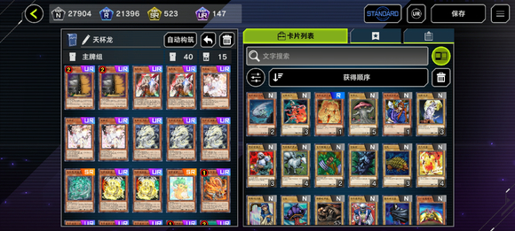 上个月入坑的萌新,倾家荡产组了天杯龙(因为觉得大三元太帅了,很喜欢中国龙),但是昨天打一天觉得很难受,手牌要么龙开会抢通召然后没有两张手坑解牌,要么就是拦停了然后龙毛都见不到,或者单白板吃泡死。g感觉就没有通过几次。卡了一天钻四钻五,感觉还没有我的千年打的舒服。我复盘的时候觉得自己已经打的很仔细了,该赢的局几乎都拿下了,并非唐龙,但是就是上不去。天杯怎么也是t2的卡组吧,不至于打得这么难受吧。请大佬们帮我看看是不是构筑有问题,该怎么调整,或者是不是该转闪刀杯,闪刀轴我也有。谢谢各位