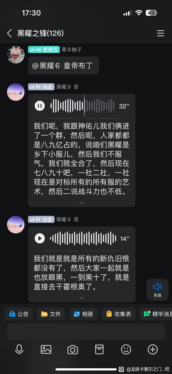 关于贴吧名人地狱火 近来龙卡黑区的一些破事在此给路人解释清楚,以及合区以来村雨-剑来为了证明自己的努力付出。第一:黑区78910合区后的一社二社并没有其他区那么极大的差距,村雨70亿的战力在龙卡还算看的过去的数据,战力不高,但好在活跃以及团结。包括社团对抗,剑域,自由一日都有严格的指挥,这是黑10曾经一社剑来的传统,至于黑10剑来作为黑区曾经的钢铁社团(至少黑9狮心会也就是全明星的前身从来没有在社团战上赢过剑来)为什么黑曜全明星合区不带剑来呢,甚至剑来没有一个人在全明星,地狱火至今没给出明确回复。 甚至合区前地狱火多次明确表示不参与合团一事,决定养老,却在合区前一天突然宣布合团,将789三个大区的高战合为一个社团(即黑曜全明星,现名DORO),中低战合为一个社团(到此一游)。然后不带自己本区2社(村雨)以及跨服社团中表现最好的10区1社(剑来),并且扬言他们两个社团要垄断区内奖励,包括徽章,剑域,自由一日。 ![]() ![]() ![]() |