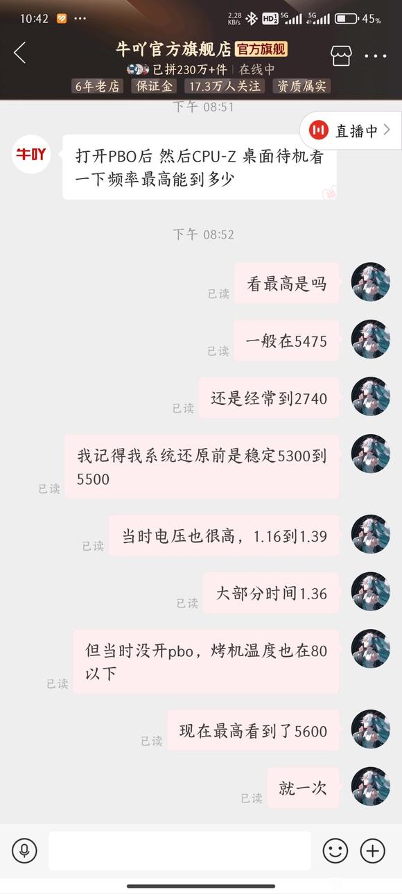 求助各位牛爷爷,本人四月下旬在PDD购买整机,到现在使用了二十天出头,配置在图里(一二),开始几天还行,后面就开始频繁蓝屏,每天都能有一两次,无其他问题,当时CPU电压1.35到1.41,频率一般稳定在5300-5500,CPU烤机温度79℃,后来开始找蓝屏问题,但没找到,因为身边也没多余配件,没法控制变量,蓝屏问题也难以复现,但蓝屏前经常会卡一下,要么是游戏加载卡住(不影响看网页视频什么的),要么是整体卡一小下,然后立刻蓝屏,蓝屏后也没机会看错误码,重启得太快,后来去问客服,客服也没法给我什么好建议,只好叫我还原系统,昨天下午还原系统后蓝屏问题似乎有所改善,但今天一看游戏pp的性能监测,发现CPU降频严重(见图三四),然后又与客服沟通(图五六七),最后开启pbo,频率依旧波动极大,烤机95℃撞温度墙,频率只有4300,pbo设置我放图八九,现在我该怎么办![]() ![]() ![]() ![]() ![]() ![]() ![]() ![]() ![]() |