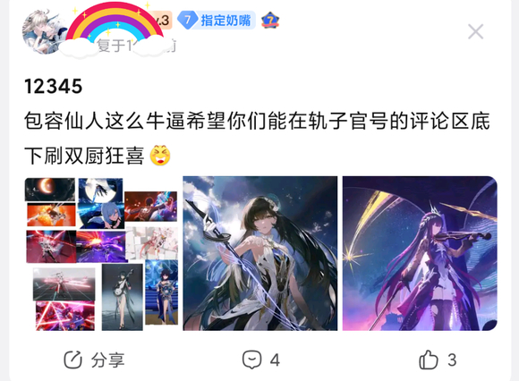 | 我还要三厨狂喜,将来nami出来我还要四厨狂喜。战场双马尾就有菲比,还有“维里奈”。 吧里某些说什么不跟米双厨狂喜的。 我只打回旋镖反击,可不主动鉴抄。说不定我回击的回旋镖都比你主动出击的次数多呢。 拉踩的,罔顾事实的我反对。不多叠甲。 不论是深痕、拾梦白菀、boss回音、自机回音、boss芙露德莉丝、自机卡提,大招都可以归类到剑光炮,但明显各有特色,要以此来拉踩,还是离远点比较好。 【图2】同甘共苦也是搞笑,玩过游戏还同甘共苦,玩鸣潮不是因为它好玩而是因为能受苦?我愿意为鸣潮辨明一些谣言,是因为我喜欢面对谣言吗,不会吧? “神露”我是记得23年12月那次测试有解包过codename是luxiya,就算是我个人记错了,外形的直观感受也是很恰当的。反正我是记得挺多东西,比如今汐第一次出现在哪,守岸人在共鸣测试哪个研究员有描述,凝音装置共几个实装几个,传奇开拓者和“界限本就是用来打破的”是跟谁有关。 也没见你们去骂叫声骸为圣遗物的,知道库洛第一次用同类数值系统在哪年哪月吗?骂过就给出证据吧。 【图3】在图2视频评论区我终于找到了把我也截进去的。 【图4】按你这个来说,我拥有绝对的ky豁免权咯?谢谢你嘞 ![]() ![]() ![]() ![]() |
