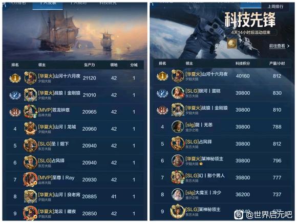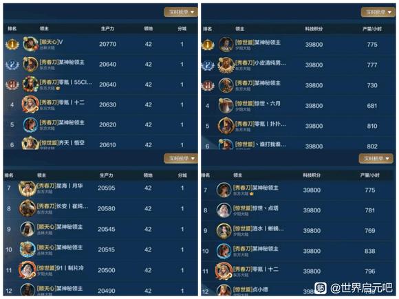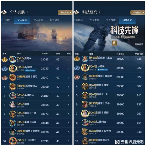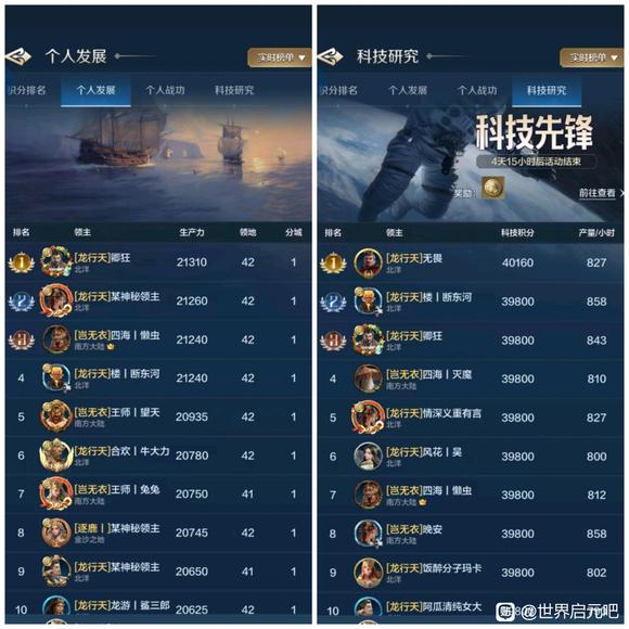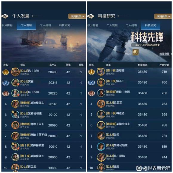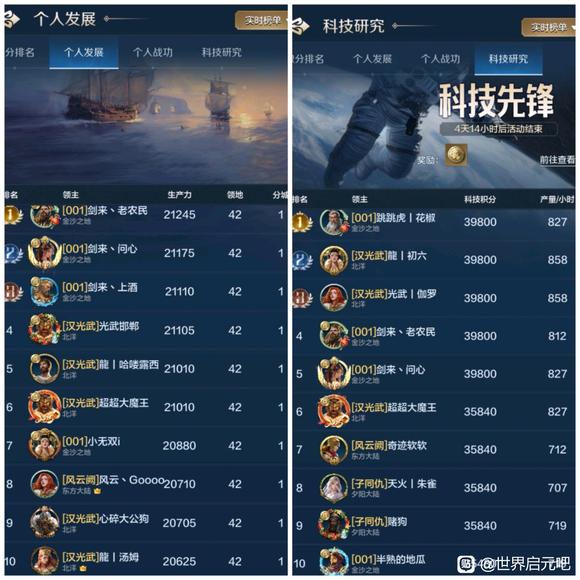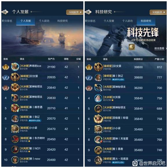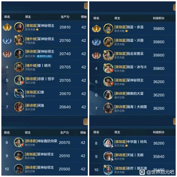 个人发展和科技是一个联盟高端战力的体现,我们选取了部分区服48小时个人发展和科技研究排行榜情况进行比较,也欢迎大家继续投稿。 1025服各有千秋 盛世华夏(华夏火)的山河十六夜成功占领了1025服个人双榜第一名!还好银河丨喵喵骑(SLG)的银河丨蛋糕拿下科技榜第二名,这才让喵喵骑没有全面失守个人双榜前三甲,从数量而言,盛世华夏占据了发展榜半数的位置、喵喵骑占据了科技榜半数的位置,可谓是各有千秋。 ![]() 1026服群雄逐鹿 齐丨鲁(QWQ)和春庭雪(秋秋后)成功夺得两榜状元,齐丨鲁在两榜前十位置上占有优势,龙卧长城(冠军侯)的开荒速度受到了一定的影响,千耀晨曦(锦鲤阁)的晨曦丨横刀夺下个人发展榜探花郎的位置! ![]() 1027服全力争夺 一个新盟(001)在个人双榜上冲劲十足,光武之志(汉光武)和一个新盟近乎包揽了个人发展榜前十的所有位置,科技榜的看点就很多了,风云吟月(风云阁)、王御江山(子同仇)均有强者登榜前十,争夺非常激烈! ![]() 1028服三家争榜 1028服个人发展和科技榜前十是东方战锤(大冰锤)和秦丨启明星(秦明星)的主要争夺战场,锦绣长风(大风歌)也有强势登榜,但数量上略逊于两个联盟。 ![]() 1029服秦楚争霸 虎啸龙吟(龙行天)与王于兴师(岂无衣)险些全占了双榜前十,可见未来1029服主要是这两个联盟的龙争虎斗,逐鹿天下(逐鹿)也有一人登榜发展榜第八名。 ![]() 1030服略有优势 隐世华庭(绣春刀)占据了双榜前十半数的位置,天下归心(顺天心)与惊世流云(惊世盟)虽然分别拿下个人发展和科技榜一大哥的位置,但在数量上不及隐世华庭。 ![]() 1031服互有优势 夜烬天明(夜珈蓝)成功拿下双榜榜首位置,诗意天城(醉诗意)在个人发展榜上占有优势、夜烬天明在科技榜上占有优势,匡扶汉室(楼外楼)拿下了个人发展榜第2、第4的位置。 ![]() 1032服全力争夺 甜蜜蕉饺屋(DJJ)、雨夜听海(雨丨夜)、琳琅天上(琳琅阁)正在全力争夺双榜前十,从数量而言,甜蜜蕉饺屋具有一定的优势。 ![]() 感谢汉堡、眠梦、花椒椒、核桃、阿幼朵、姨姨、自在天、心愿、好、榆非晚等开拓者的投稿,欢迎大家继续投稿、爆料,接受对联盟和盟主的专访,联系我们,TimiSFA。 免责声明:文章中一切素材均为游戏世界启元及其衍生相关内容,如您认为侵权,请持相关权属证明联系我们进行处理。 |