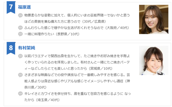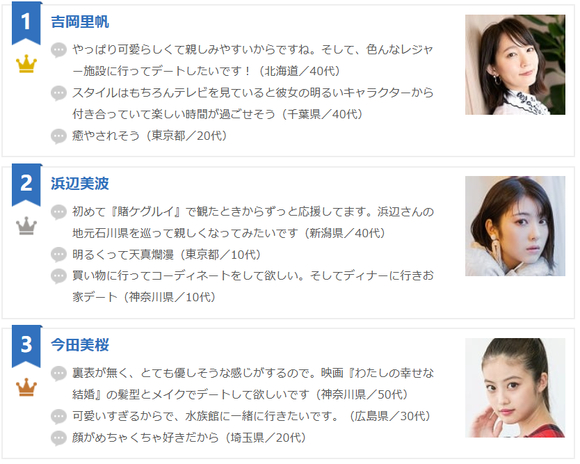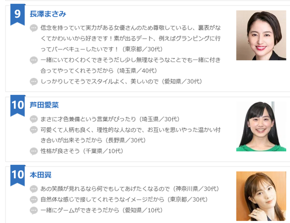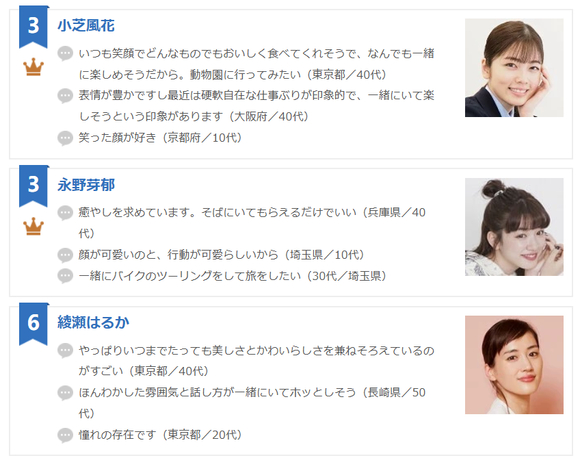 【oricon】2025年男性票选的 想让她做恋人的女明星排行榜TOP10
