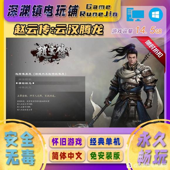 | 【游戏名称】赵云传:云汉腾龙 【原版名称】Three Kingdoms Zhao Yun 【发售时间】2024-01-18·PC版 【游戏大小】14.5GB·解压后 【游戏语言】简体中文 【游戏类型】动作角色扮演游戏 【安装方式】解压即玩·免安装版·免Steam 【发货方式】完整解压缩包RAR·百☁盘 【游戏渠道】深渊镇电玩铺RuneJin 【最低配置要求】 ● 操作系统:Windows 10/11 64位 ● 处理器:Intel Core i5 ● 内 存:16GB RAM以上 ● 显 卡:NVIDIA GeForce GTX 750 Ti ● 硬 盘:需要20GB 以上可用空间 ● 其 它:需要DirectX 11 【赵云传:云汉腾龙】 原赵云传核心成员全新制作的经典RPG单机游戏,讲述赵云青年时的故事。经典人物回归,加入新角色,演绎全新的故事。游戏保留多武器以及符文炼化等多种原版玩法,新增套装、随机属性词条等系统,更有战马纵横突击,延续二十年经典! ![]() ![]() ![]() ![]() |
