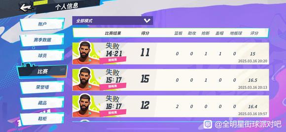 1号位有时是这样的,我用司机,队友是3j和罗德曼。对家是库里罗德曼和3J。我一上来就被对面3J冒了俩,后续使进浑身解数得了11分,对面库里9分,最后输了1分。打完出来我直接重度浪投被扣了10分……我家队友是真不打啊,拿球就给我。每回合基本上洗球都洗到时间耗尽,但队友真不打怎么办呢?我作为1号位最后没办法也得出手。但对面3J确实防的好,后来没再挨冒,但被踩了很多干扰,出来看人家现在超巨50星……像这种就真没办法,但是也不是每局都这样,但是大多数对局里,2、3号位还是会找机会偷分给1号位分担压力的。