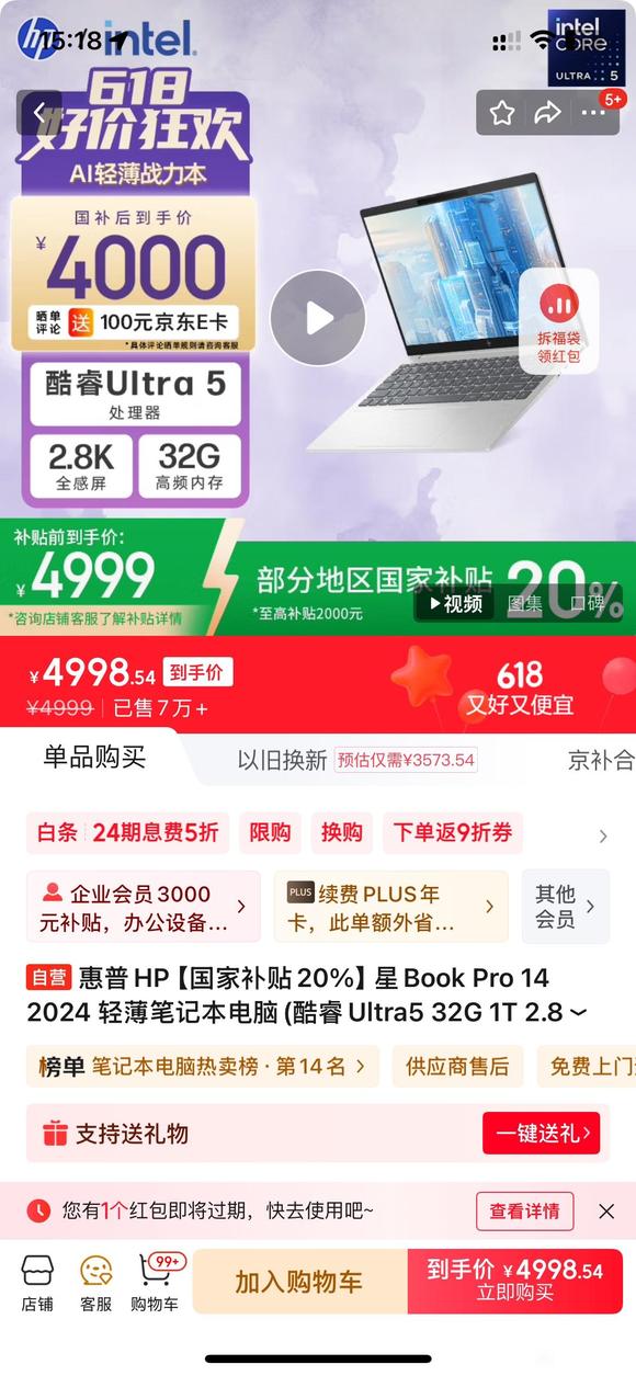 东哥这两天惠普新出600神券补贴,京东首页搜溹《人人有惊喜199》,这力度还有谁?