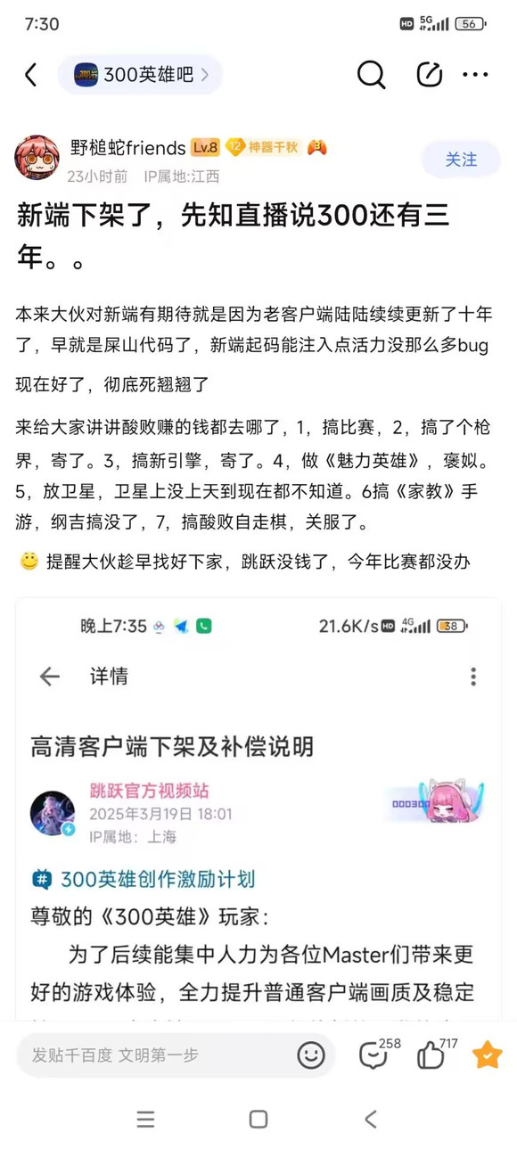 隔壁来的,刚入坑这边不到两周,只能说隔壁好死,那么多产能不回馈玩家,一昧作死背叛玩家阶层,卫星放了一个又一个,七八年前放出来的社团上一年还是上两年才好 他不死谁死,新出的英雄一个不比一个司马