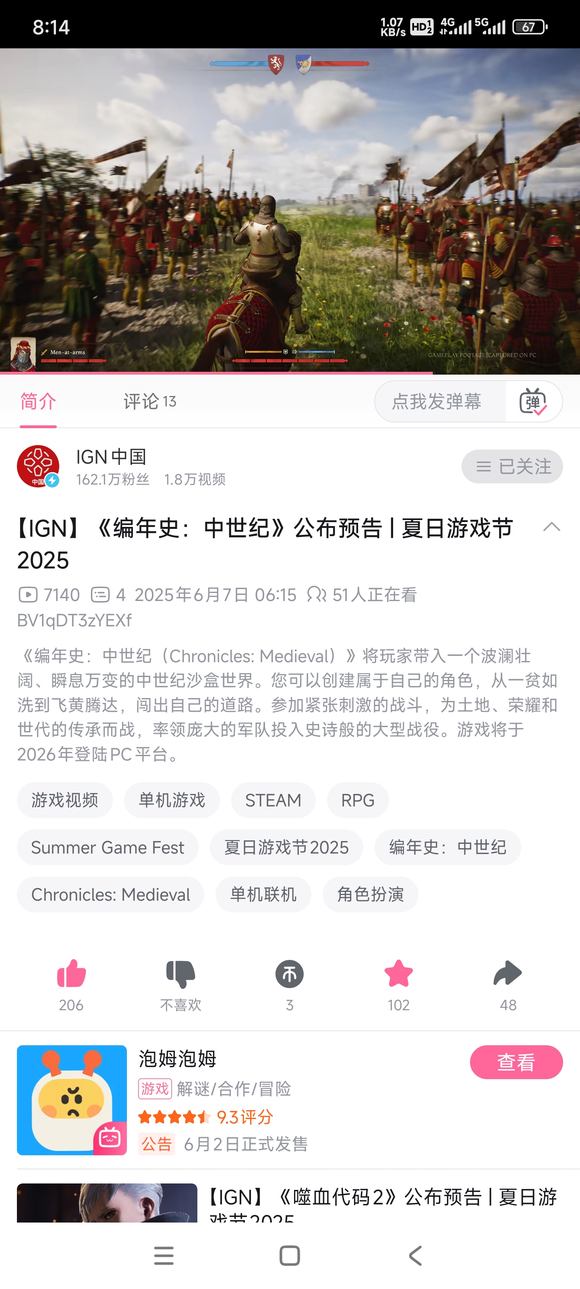 这一幕可以看到对面敌人的军队了,这画面真没的说 ,不过视频演示里都掉帧严重。左下角应该就是血条了,“men-at-arms”我查了一下是对中世纪重骑兵的特称
