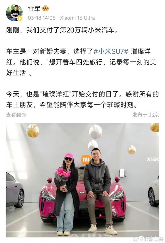 小米汽车首批交付跟雷军合影的那些车主,我都在抖音和小红书等平台刷了好几个了,基本都是自媒体带宣传的,个个光鲜亮丽的,你看跟大嘴和船夫合影的车主才像是真正提车的普通人