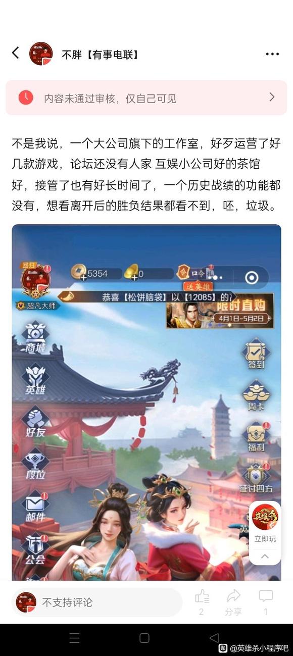 战绩早都可以查了。另外小游戏论坛是微信游戏圈英雄杀圈子