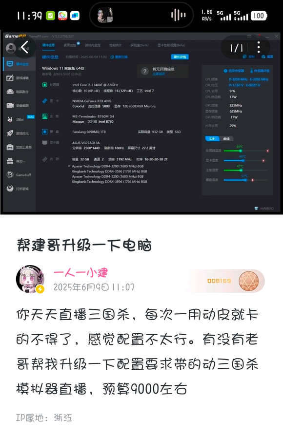 隔壁云笨玩三国杀天天卡了,玩三国杀还是太吃配置了