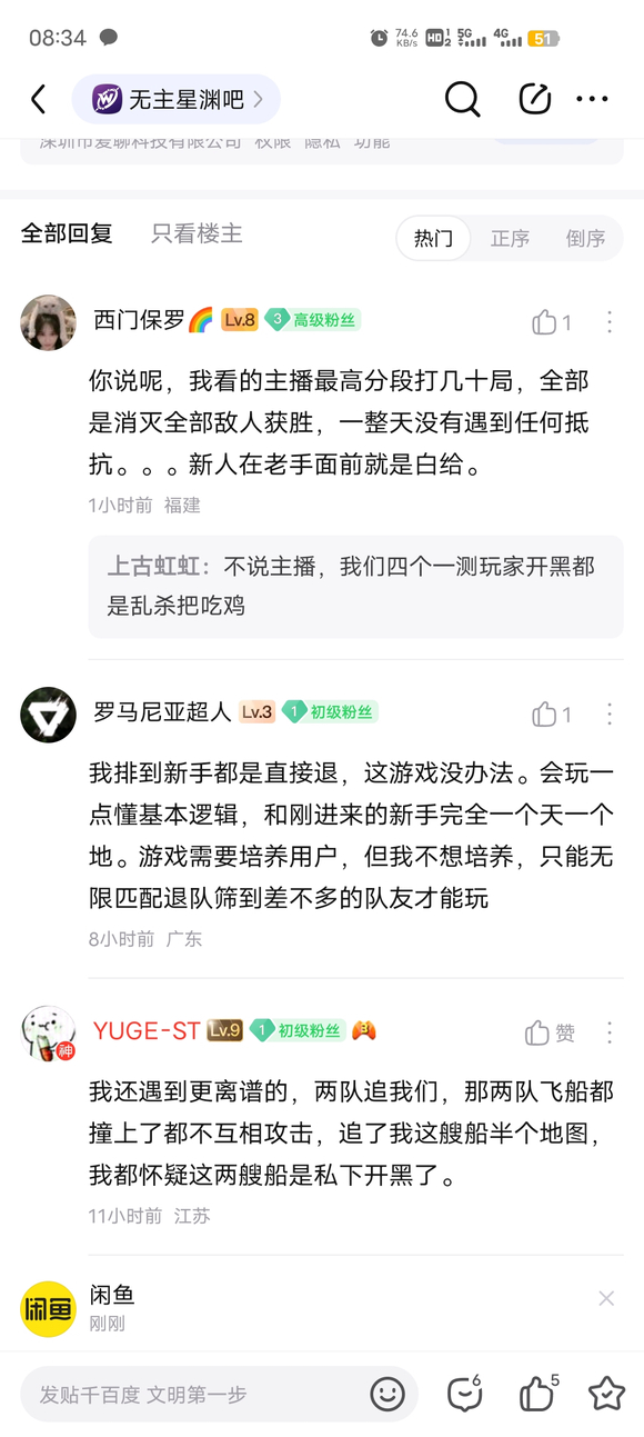 感觉这种游戏可以划一个类别,就是游戏强制联机/能独狼但体验极差,自由度很高导致新人上手困难,老人一个抵十个新手,游戏本身指引还很薄弱,游戏热度也不够高导致玩家社区对新手的传授能力不足,同时游戏机制偏偏又会导致新老组队时新手会成为突破口反过来拖累老玩家,大大影响了老带新的路……最后就老人排不到合适的队友游戏热情降低,新人日常被当鸡宰没有练习机会,还要被老人嫌弃也想退坑,最终游戏环境僵化就那么一群人玩,甚至直接凉凉,留在玩家的回忆里……目前单我个人碰到的这类游戏都有好多。黎明杀机经典新手玩人秒倒还被队友喷,玩屠把把被四跑;盗贼之海新手船都开不明白,而老玩家只要成功跳帮就能单杀四个新人再顺便守四个复活点;泰坦陨落老玩家十秒飞跃整张地图顺便把路上的人全灭了,新人不看死亡回放都不知道自己咋死的:还有最近那个黑夜君临,其实也刚出来没多久,但我都看到不知道多少老玩家嫌弃新人的帖子了。