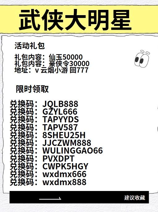 武侠大明星兑换码新鲜出炉