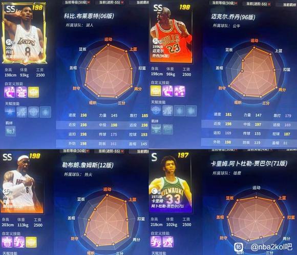 06科,96乔,贾巴尔真算起来也就7个乔治而已。12詹好像1级非卖吧