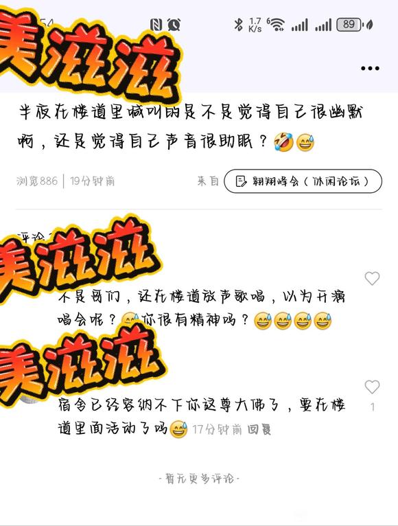 : bro,大半夜在楼道里跟TMD返祖一样乱吼乱叫,然后还以为自己是明星敞开歌喉放生唱,你TMD以为自己开演唱会呢?浮木怎么办?😇(参考频道吐槽一下遇到的逆天类人) ...