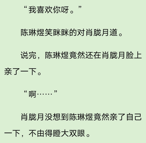 1、陈琳煜亲了肖胧月的脸,肖胧月回亲了陈琳煜