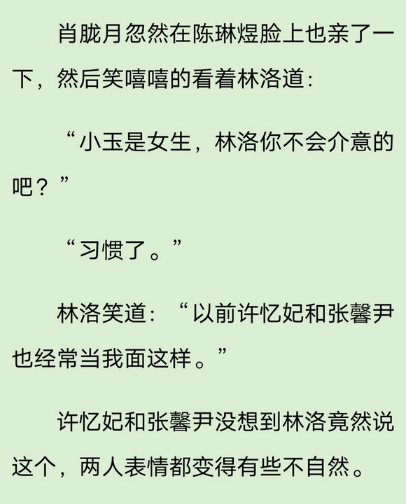 : 1、陈琳煜亲了肖胧月的脸,肖胧月回亲了陈琳煜2、张馨尹和许忆妃经常相互亲脸,而且还是当着男主面