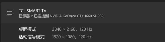 显卡虽然老了点 1660S 但是显示器DP口的的4K 160HZ是正常的 所以首先排显卡问题![]() 但是关了显示器 只开电视机 开4K分辨率可以支持60HZ 但是调到120HZ的时候 活动信号模式分辨率就会降成1080P 120HZ ![]() 电视型号是TCL 55Q10G 参数说是3个HDMI2.1 但只有一个接口支持 4K@120HZ 确定没插错 也确定是2.1的线 支持4K 120HZ的 关键之前是能开的 前两天WIN10换WIN11然后更了显卡驱动之后就不行了 伪4K 桌面也好进游戏也好 调分辨率看上去是4K 实际上无论效果还是流畅程度都是1080P 不用吐槽1660S带4K120帧 反正我看个剧啥的还是够用的 甚至魔兽野外开个5档也有个50来帧 大米差不多30帧 也不是完全不能玩 主要是后面也会换5070ti起步的显卡的 如果电视以后都开不了4K120了 我寻思还得换个电视了 最后想问一下这可能是系统问题呢 还是驱动问题呢 又或者可能电视其实是残血HDMI2.1 本质是2.0 之前是加持了什么黑科技才有4K120HZ 我不小心弄没了才导致的 |