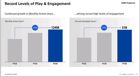 省流:PS5大赚 销售额1360亿刀 营业利润130亿刀,月活用户1.24亿,年度游戏时间510亿小时,平均用户支出846刀!剩下的就是各类型游戏开发组的情况解读:营业利润率9.56%比之前的6%高了不少!其他增长不大。注:全球1.24亿月活用户平均游戏时间411+小时!这还是用户平均啊,一个月活账号算一个人,不是一台机器算一个人!那什么“我是SB侠”还不闭嘴是吧!之前我说那些每天不玩游戏光吹牛逼的根本算不上【PS5玩家】只能算【PS5用户】还喷我,现在官方数据出来了!年度游戏时间411小时,尼玛某些人8年了还不到1500小时怎么有脸水到15级的