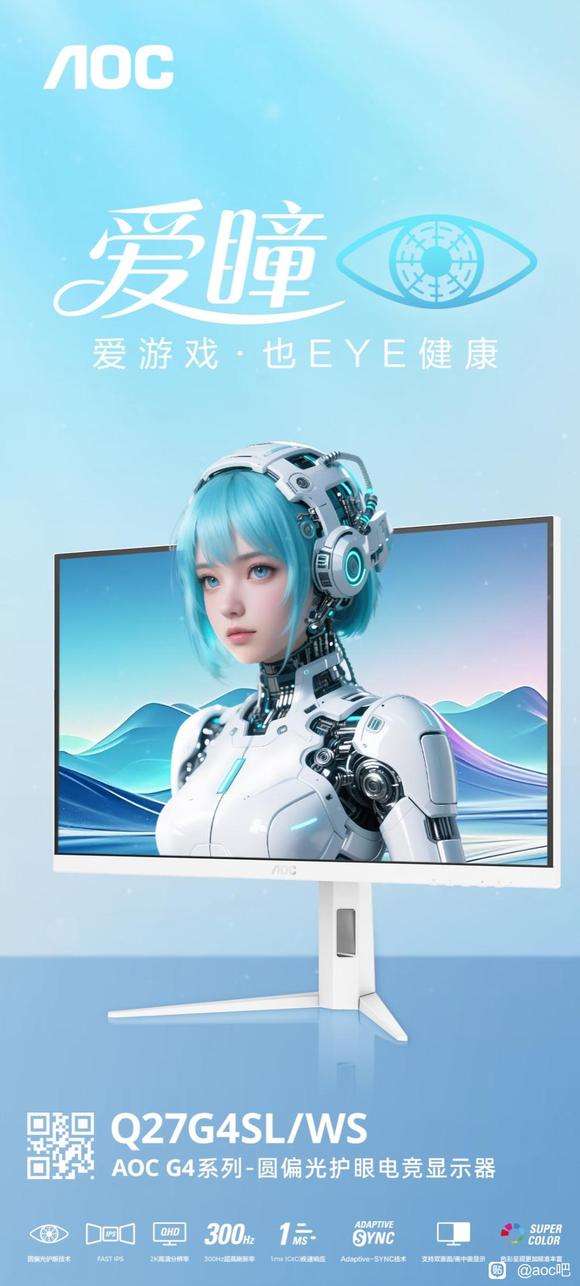 #AOC爱瞳圆偏光电竞显示器 Q27G4SL/WS,融合#BOE圆偏光技术 、#莱茵TÜV硬件低蓝光 与#DC不闪屏调光 ,三重护眼科技重塑电竞健康显示新标准!