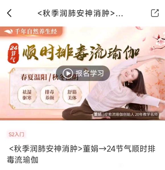 养生养颜~太好了!跟着节气养生、练习瑜伽,做活力满满的元气女神打磨3年的明星瑜伽老师董娟老师《7天节气畅清养生营》,终于在今年春天开始啦!现在已经招募到第三期了哦在快节奏的现代社会,我们的身体变得越来越迟钝、越来越容易囤积du素。让我们跟着明星瑜伽老师董娟老师,跟随二十四节气的节奏,从肠道畅清开始,轻松掌握节气的养生要点~在美好的仪式感中练习节气养生瑜伽,体验轻断食食谱,坚持“早元晚菌”,远离pupu困难、气球肚、暗黄脸,做面若桃花的元气女神! 7天节气畅清养生营有什么特点: 💟1.明星指导 私教体验董娟老师以20余年专业瑜伽教培经验每天30min瑜伽课程,不踩坑,新手友好💟2.营养食谱 不怕吃错轻断食食谱 +专业营养师指导三餐不挨饿,易坚持 💟3.关注肠道 身心平衡肠道是人体健康的核心,负责人体99%的营养吸收、80%du素排出有人体70%的免yi功能食谱搭配食品级益生元、益生菌膳食补充剂肠道畅清、有益菌丰沛,吃出健康美 ![]() ![]() |