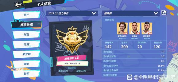 最近有签到送橙卡活动临时起意开个小号,没有满级潜能,天赋卡勉强够开两个技能,尝试用一个球员单排上超巨,历时三天终于做到了