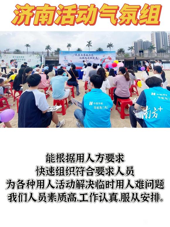 本公司专为解决活动邀约观众不足,及到场不足情况,各种临时需要大量人员充场、冲人气、凑人数的活动,各个年龄段从18-60岁人群都可以组织。 我们的服务项目有: 兼职、礼仪、会议、协助、现场工作人员、观众、卖场开业活动,商业活动充场面充人气服务等;会议充场、展会充场、比赛观众充场、拍卖会充场、讲座充场、餐厅吃饭充场、明星见面会粉丝、群众演员等职。 1、会议充场:充当开会人员,让会议圆满结束。 2、新开饭店充场:充当消费者,让饭店充满人气。 3、讲座充场:充当过来听讲座人员,使讲座更有意义。 4、粉丝充场:充当铁杆粉丝,给个人造势。 5、比赛充场:呐喊,加油,助威,让比赛更加激情。 6、发布会充场:充当参加新品发布会人员,使产品更具影响。 7、座谈会充场充当研究人员,积极谈论研究问题,使座谈会更活跃多彩。 8、演唱会充场:提升现场气氛,给力造势,使演唱会空前成功。 团队人员素质高、形象好,对工作认真负责,现场气氛活跃积极,始终秉承着客户至上,用心服务。需要临时用人,无论几十人还是几百人,只需您一个电话,保证人员及时到位任你安排。 ![]() |