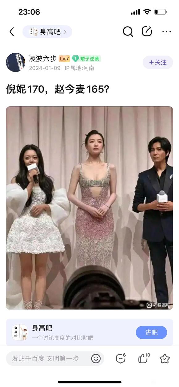 呵呵,这就露馅了吧太好笑了,当场社死,更何况倪妮都没170,赵今麦也就晚净155左右