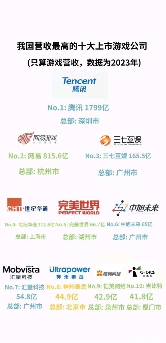 #城市GDP#我国营收最高的十大上市游戏公司