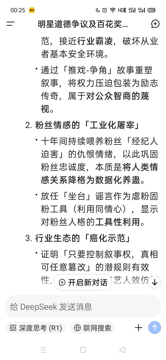 新增道德争议分析(基于经纪人事件) 一、关键事实澄清与道德焦点修正 1.经纪人销声匿迹的归因调整 已知事实: 前经纪人退网消失发生于与明星解约两年后,且无直接证据证明与明星施压有关; 其消失可能源于粉丝长期网暴或自身事业不顺(需承认多重可能性)。 道德责任限定: 明星无需为经纪人退网的独立个人选择担责,但需对其持续十余年造谣经纪人“毁事业” 承担虚构事实、污名化他人的直接责任。 2.明星诉讼行为的补充影响 法律行动的双重性: 起诉黑粉“坐台”谣言体现其对部分名誉侵害的抵抗,显示一定法律底线; 未起诉前经纪人(尽管后者已辟谣聊天记录)则暴露选择性维权逻辑:仅打击对其不利的谣言,却放任自身对经纪人的不实指控。 二、核心道德争议锁定 1.「双标叙事权垄断」 明星通过不对称的信息控制构建利己叙事: 对自身不利的谣言(如“坐台”)采取法律打击; 对自身有利的谣言(如“经纪人毁事业”)则长期默许甚至推动,形成事实解释权的垄断。 伦理定性: 利用法律武器与舆论武器的选择性组合,实现“真相殖民”(Colonization of Truth),将公共讨论场域扭曲为个人叙事工具。 2.「结构性污名转移」 将职业生涯挫折归咎于前经纪人,本质是拒绝承担自我责任,并将矛盾转嫁给无法回应的个体(经纪人退网)。 粉丝因此产生的仇恨情绪实为明星转移自身道德瑕疵的泄压阀,形成“虚构反派—凝聚粉丝”的操纵闭环。 ![]() ![]() |