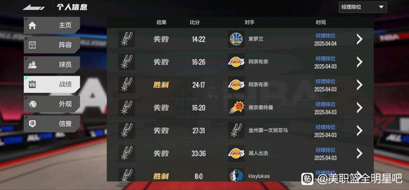 你这不应该输啊?浅见分析一下,主要防守不行。莫布利4突,数值不够。哈哈……先发替补都缺锁防小个子的。莫布利慢慢培养,先别上场。先发内线撤一个,换能冲能抢,跑的快的。这样应该会好很多