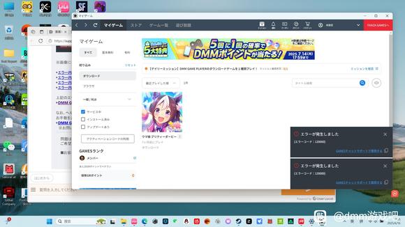 dmm的技术文档中显示,120000的错误第一种情况是电脑的时间没有同步,第二种情况是没有确定游戏启动类型。以下是原文:在 DMM GAME PLAYER 启动游戏时显示“错误:120000”1. 同步电脑时间您所使用的电脑时间若存在偏差,将无法正确获取信息,请进行时间同步。■ 时间同步步骤(示例:Windows 11 系统1. 从开始菜单(Windows图标)打开“设置”(齿轮图标)2. 打开“时间和语言”3. 打开“日期和时间”4. 点击“立即同步”按钮,并将“自动设置时间(时区)”设为 开启 状态2. 确认对应游戏的启动类型在 DMM GAME PLAYER 的游戏页面内,如果标题下方显示有 “DMM GAME APP PLAYER”,则该游戏的启动类型为 “DMM GAME APP PLAYER”。如果没有显示,则该游戏的启动类型为“下载”。