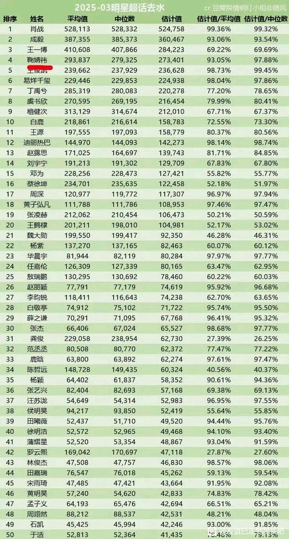 : 3月份女明星排名1-鞠婧祎2-虞书欣3-白鹿4-迪丽热巴5-赵露思6-杨紫7-赵丽颖8-杨颖9-田曦薇10-宋雨琦11-孟子义