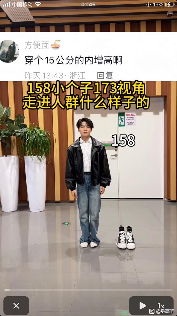 这人158穿的15cm增高 但是由于裤子的原因 看他鞋子视觉效果看起来只增高了五六厘米 谁能知道他实际上增了15cm 普通人增高都这么隐蔽 咱就是说明星增高会不会比我们想象得更厉害 个人猜想不喜勿喷