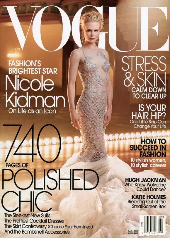 美国版VOGUE封面都有种美式的土气,文字铺满封面更加重了这种感觉,同样是妮可基德曼,给法国版拍的封面就时髦多了。