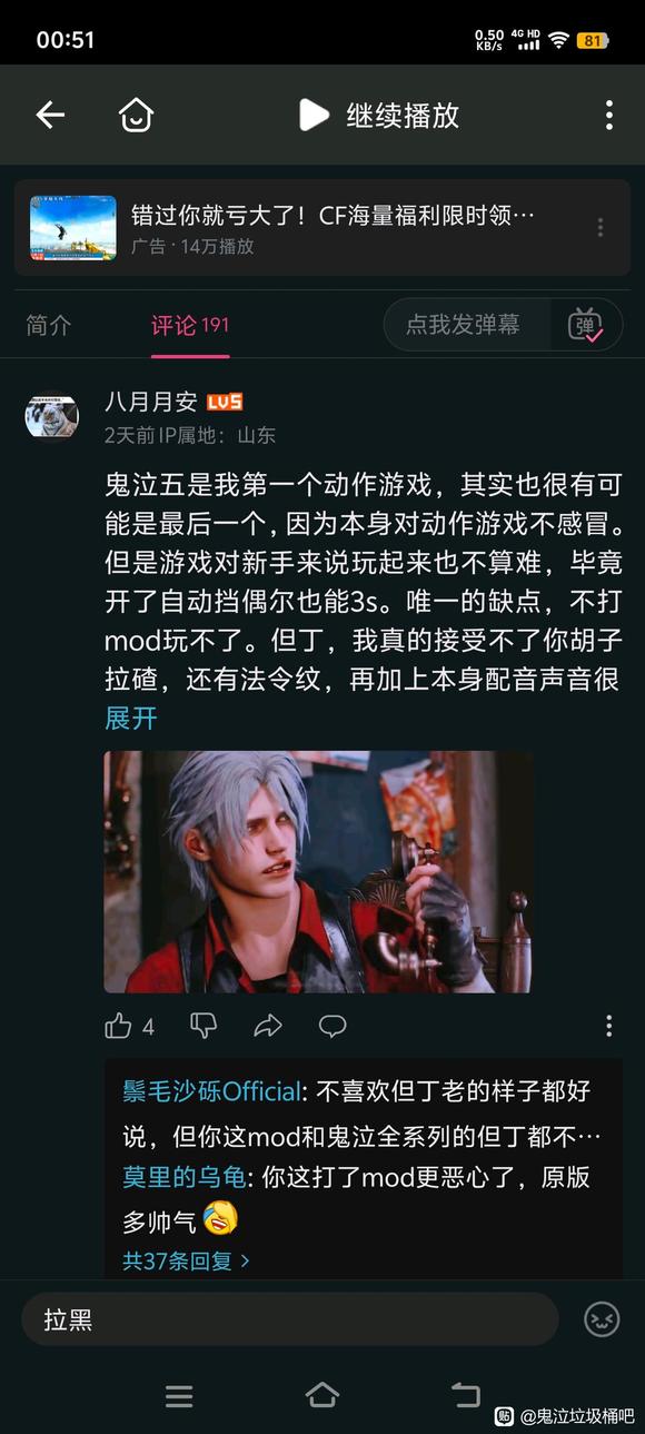 b站第一次拉黑竟然来自鬼泣玩家
