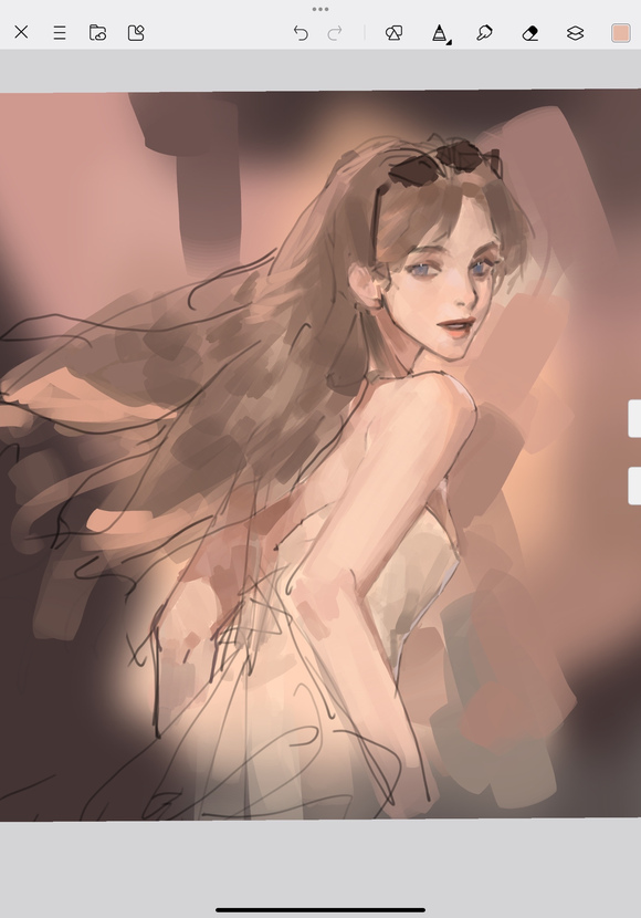 简单画了个人上去,根据色块铺点固有色,到这里大概画了1000多笔