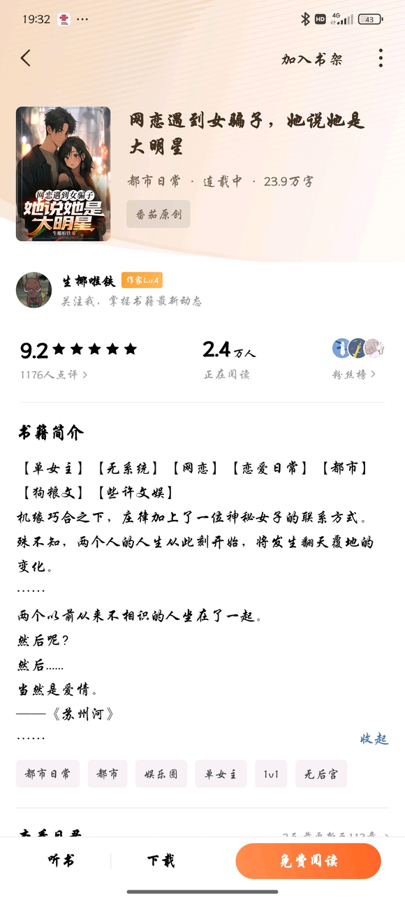 总算在番茄找到能看的了,这个作者文笔确实可以,就是上本书脑抽,爽文写毒点,被喷惨了