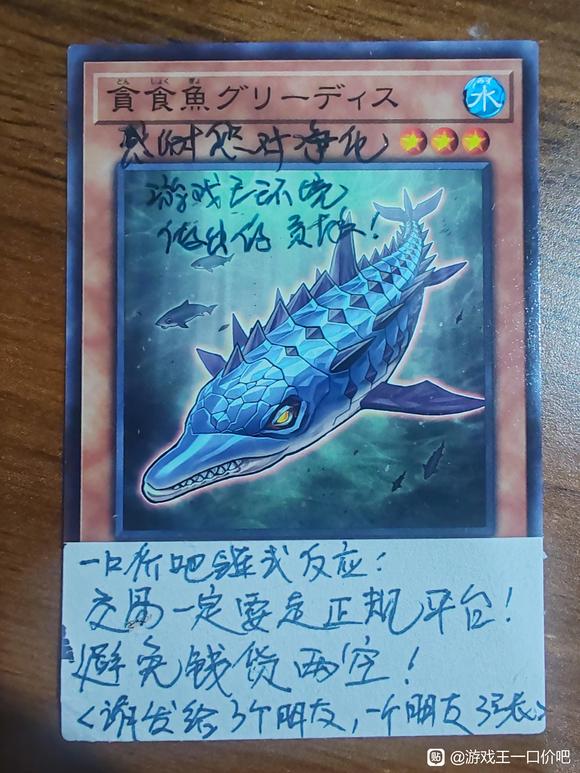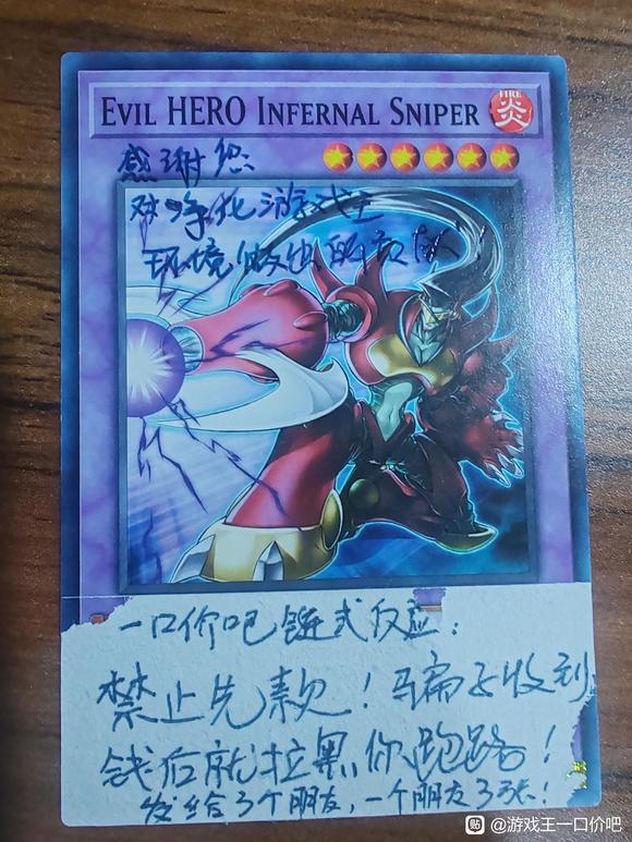 : 游戏王一口价吧链式反应小活动为了净化游戏王环境,打算做一期小活动。准备3张卡(当然也可以用白纸等等东西),每张写上不同的理性消费防骗知识,寄游戏王快递时顺手放里面。收到的人做6-9张,发到3个游戏王快递里 ...