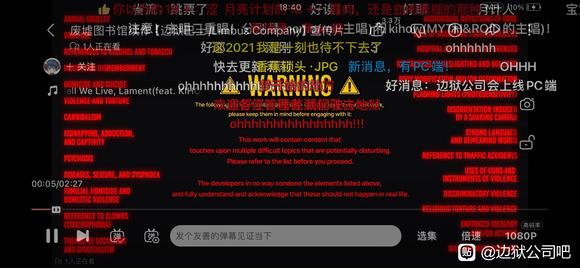 图片为21年发布的边狱游戏pv,已经出现了上个月更新的27条警告,一条不少