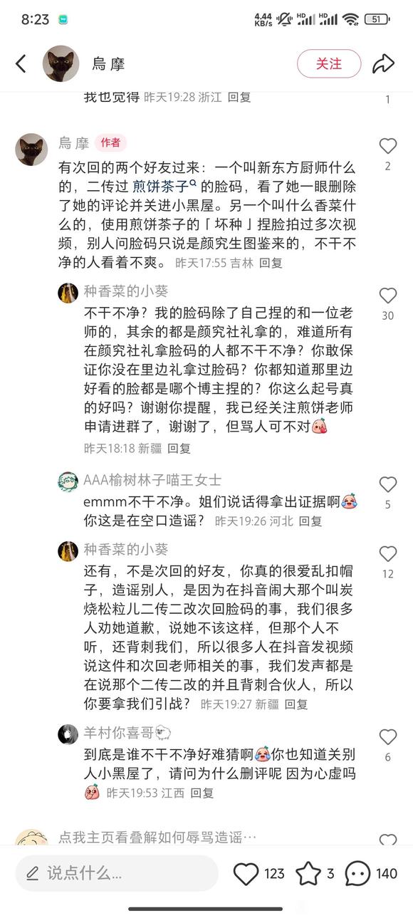 次回那事是有个人用她的脸发视频,有人问能不能蹲脸码,那人不知道脸来源就说可以蹲。然后次回老师的粉丝看到了,提醒了下是次回捏的,被拉黑删评,次回去私信她,那人也不回,还多次编辑原帖阴阳次回,跑去创作者群卖惨