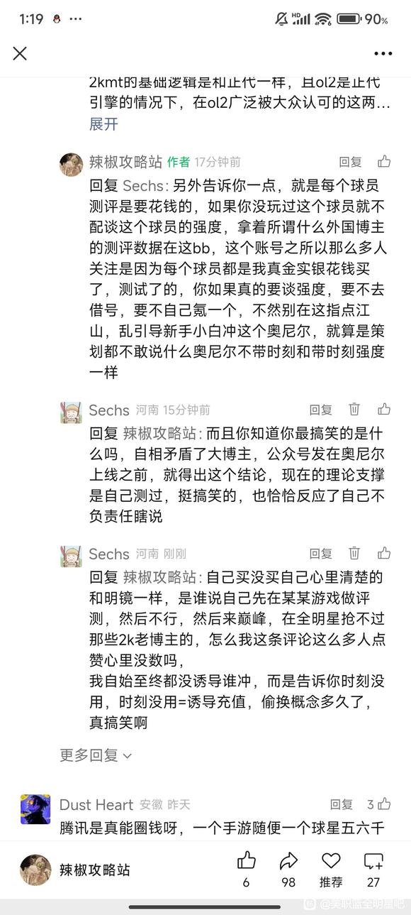 : 某知名隔壁游戏评测区主播,两头吃流量,相信有很多在他群里的哥们都知道,在隔壁就因为尬吹推出的每个球员而知名,全明星上线之前怎么在群里黑的,什么没手柄钻石都上不去,只能低端局玩玩(楼主手搓已经超巨50星了 ...