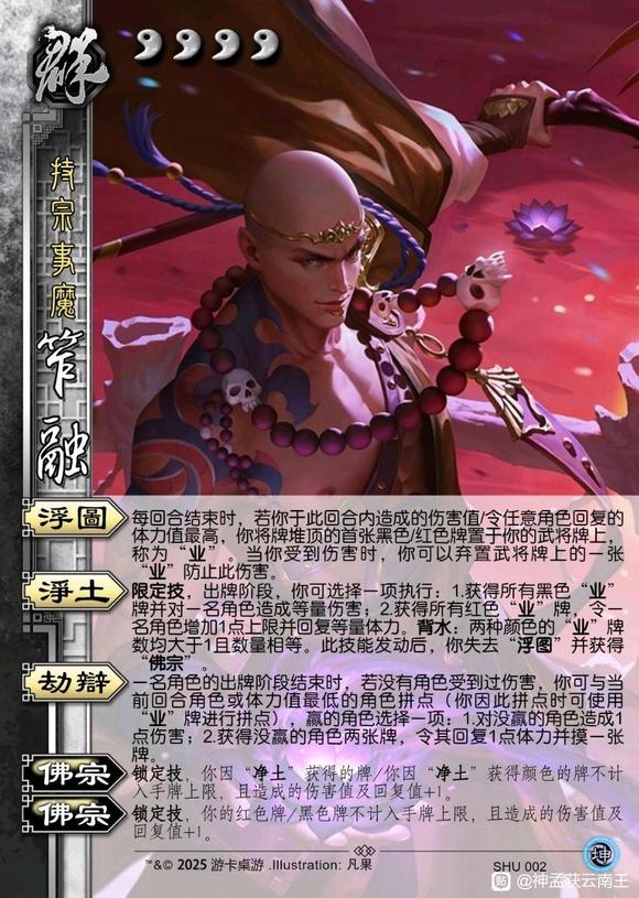 笮融的佛宗是分开来写的,意思是选一个获得,算得上阴吧,能破坏别人手牌结构能偷袭能保队友回血但是发育周期有点长,发育起来有一波爆发和一个复活甲,可以通过业和局势选择佛宗的效果因为我不是斗地主玩家,斗地主不清楚,军八四血有小复活甲称得上阴间的,只要划水仔多就强,相应的群内那种局没多少划水仔不给你叠业就弱,不过业少也能带一个人走
