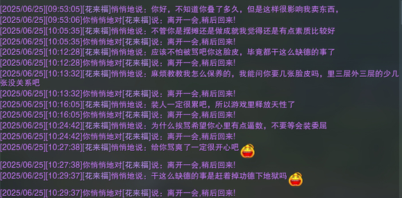 2025年6月25日 凌晨4点。小O.0临睡觉前想着做个成就,就在侠客岛随手开了摆摊挂机就去睡觉了。因为睡得也比较晚,直到下午2点才醒。结果走到电脑跟前就看到如下两眼一黑的被骂密聊。