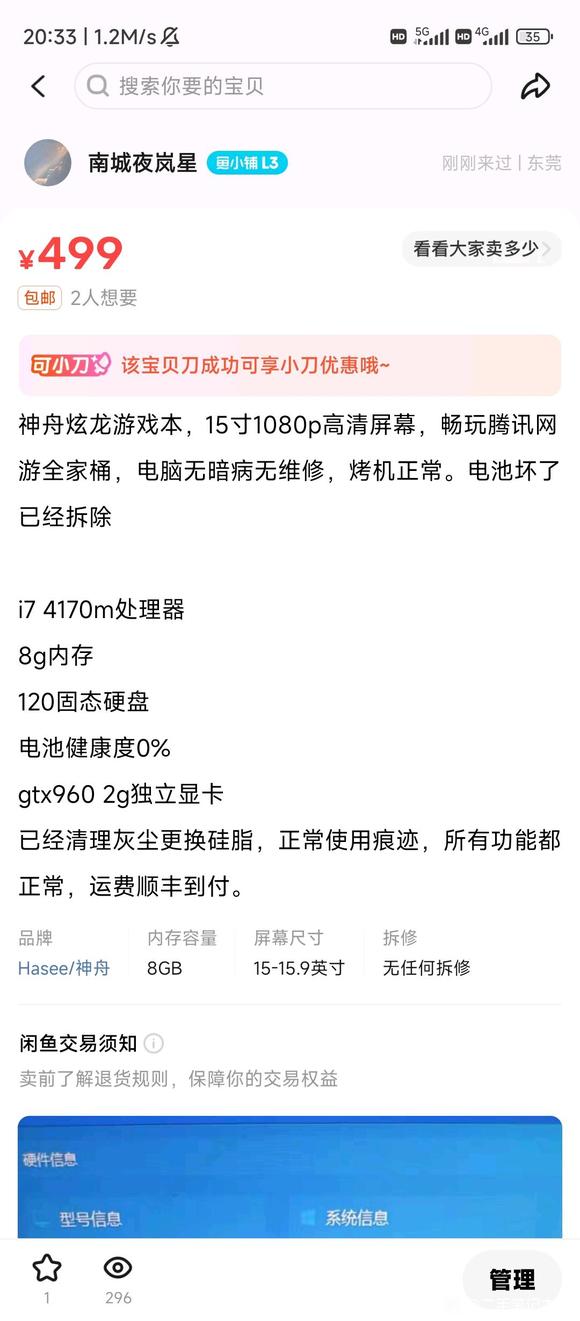 499出台游戏本,没有电池,耳机插孔不行,别的功能都正常,没有维修过